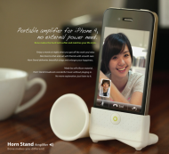 轻松看出这就什么了吗!没错!这是一款采用硅胶材质制作的号角扩音器。传统而有效的大喇叭造型,能在不需要耗费任何电力的情况下将外放声音放大13分贝。而且还能当支架使用。用来听音乐,看MTV或者放电影就再合适不过了。