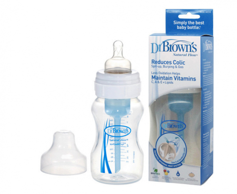 布朗博士宽口婴儿奶瓶是由美国医学博士Craig Brown发明的,制作材料是聚丙烯,高弹体,医用级硅橡胶;不设置任何阀门以达到“好流畅”效果,与母乳喂养原理相同,完全没有负压,喂食过程不产生真空和气泡,大大减小婴儿因吸入空气而引起的腹疼,呕吐,打嗝,并能维持奶液更多必要的营养。